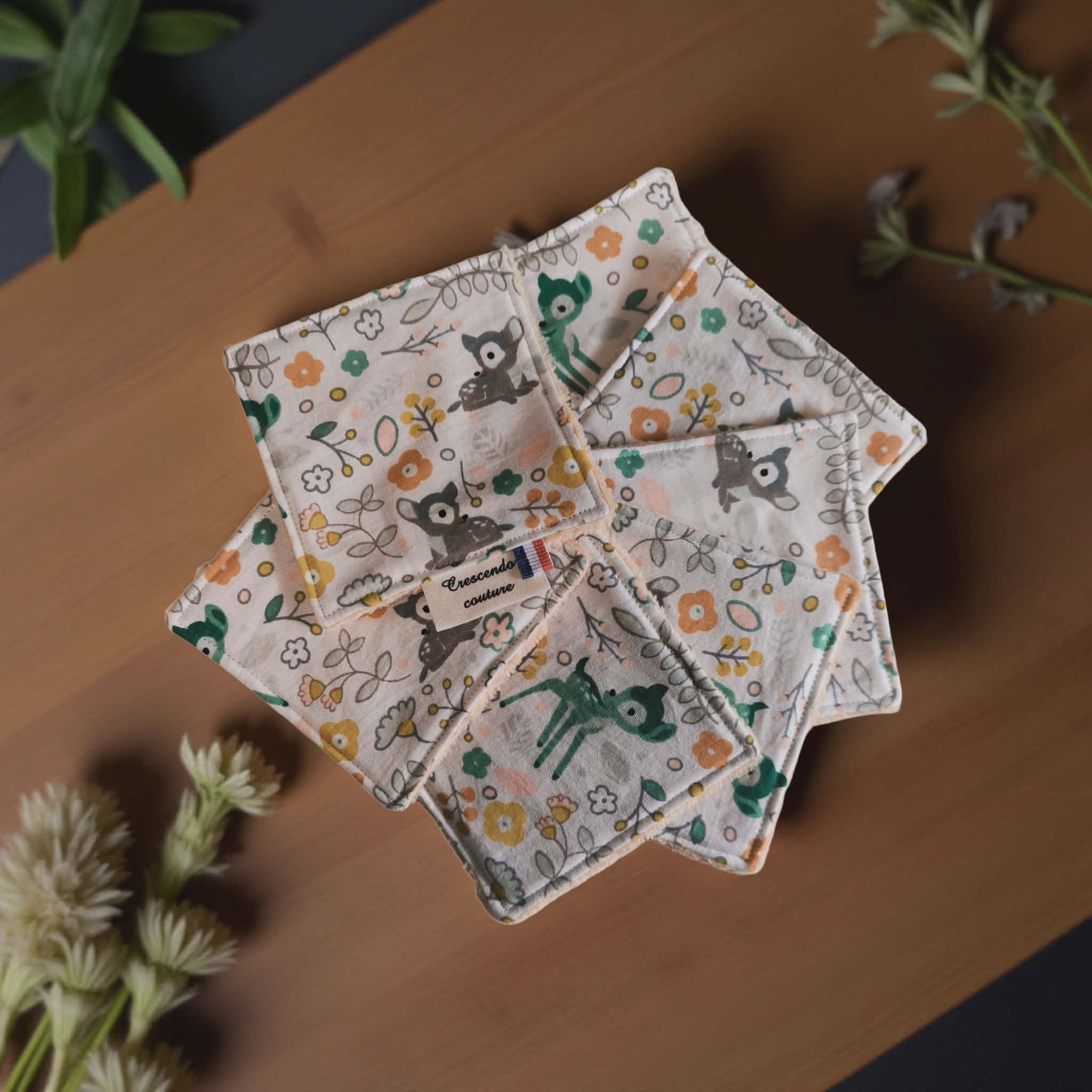 Lavables, durables et respectueux de l’environnement, ils constituent une alternative écologique aux cotons jetables, tout en séduisant les enfants grâce à leurs motifs faon et fleurs.